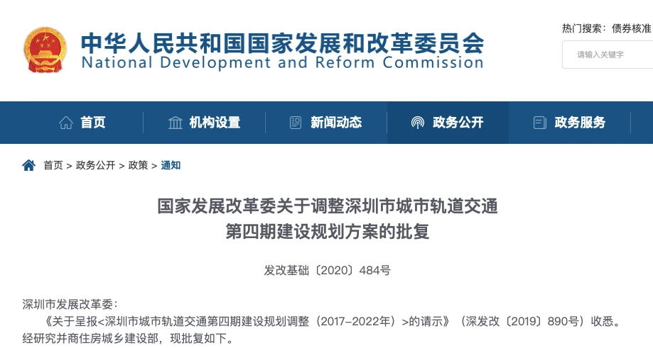 4月10日,國家發(fā)展改革委發(fā)布《關(guān)于調(diào)整深圳市城市軌道交通第四期建設(shè)規(guī)劃方案的批復(fù)》。