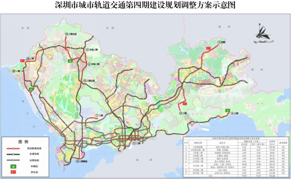 附:深圳市城市軌道交通第四期建設(shè)規(guī)劃調(diào)整方案示意圖