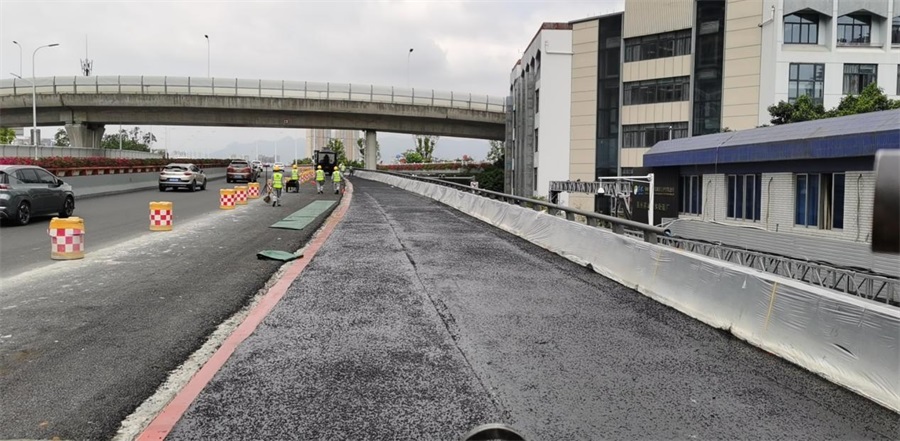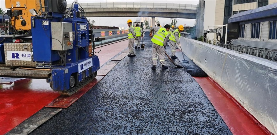 近日,公司成功中標福州市工業(yè)路提升改造工程鋼橋面鋪裝項目,該項目鋼橋面鋪裝面積約40000m2,目前已完成進場和準備工作,試驗段施工開始實施。鋼橋面鋪裝結構為:噴砂除銹+甲基丙烯酸樹脂防水層+4cm澆注式瀝青GA-10+4cm高彈改性瀝青SMA-10,該項目的成功中標為公司拓展福建市場奠定基礎。