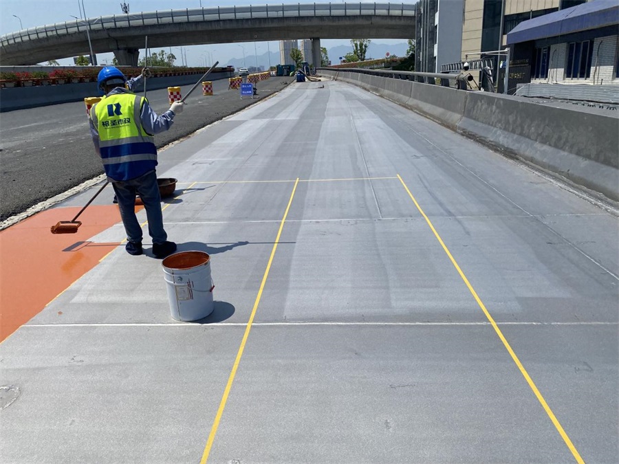 鋼橋面板噴砂除銹后底涂層涂布(試驗段)