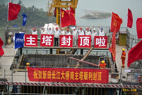 萬(wàn)州新田長(zhǎng)江大橋南岸索塔順利完成封頂,工人在新田長(zhǎng)江大橋南岸主塔上慶祝封頂成功。 4月2日,萬(wàn)州環(huán)線高速公路新田長(zhǎng)江大橋南岸主塔最后一車混凝土澆筑完畢。這標(biāo)志著中交一公局承建的萬(wàn)州新田長(zhǎng)江大橋南北兩岸索塔封頂完成。 據(jù)了解,萬(wàn)州環(huán)線高速公路由已建成的萬(wàn)梁、萬(wàn)云、萬(wàn)利、萬(wàn)忠高速和在建的新田至高峰高速公路合圍而成。新田長(zhǎng)江大橋連接萬(wàn)州環(huán)線高速新田至高峰段,是三峽庫(kù)區(qū)在建跨度最大的千米級(jí)雙塔單跨鋼箱梁懸索橋,是萬(wàn)州地區(qū)“一環(huán)八射”高速公路網(wǎng)“一環(huán)”中的控制性工程。 新田長(zhǎng)江大橋全長(zhǎng)1.7公里,一跨過(guò)江,主跨1020米,索塔為簡(jiǎn)潔門(mén)型塔,由塔柱與上下兩道橫梁組成。其中,塔柱為等高塔設(shè)計(jì),總高177.5米,上塔柱高115.5米,下塔柱高54米,塔冠高8米。 新田長(zhǎng)江大橋自2019年3月開(kāi)工以來(lái),中交一公局秉承“站位高、目標(biāo)實(shí)、過(guò)程嚴(yán)、措施全、創(chuàng)新細(xì)、品質(zhì)好、效果佳”建設(shè)理念,平穩(wěn)推進(jìn)大橋建設(shè),比原計(jì)劃工期提前近30天。(劉興敏 陳洪勝)