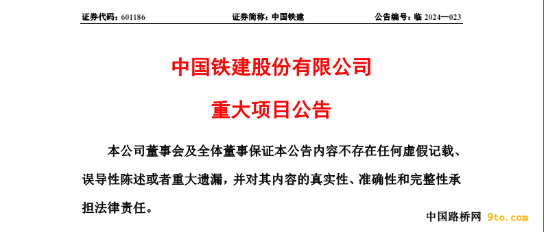 2024年5月15日,中國(guó)鐵建股份有限公司發(fā)布重大項(xiàng)目公告。近期,本公司中標(biāo)以下重大項(xiàng)目: