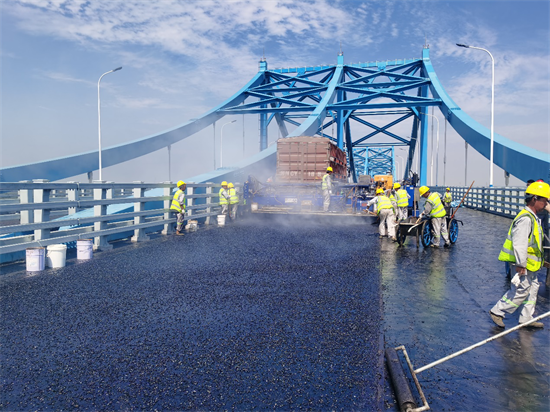 黃河公鐵大橋鋼橋面鋪裝約22000平方米,采用澆注式瀝青GA+SMA鋪裝方案。本項目的順利完工標志著濟南至樂陵高速公路的全線貫通,同時為濟南城區(qū)前往黃河北岸提供了一條新的快速通道,通車之后車輛前往北京方向和濟南新舊動能轉(zhuǎn)換先行區(qū)將更為便利和快捷。