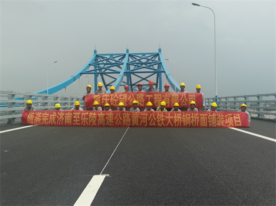 2020年6月25日,由我司承建的濟樂高速公路黃河公鐵大橋橋面鋪裝工程順利完工。
